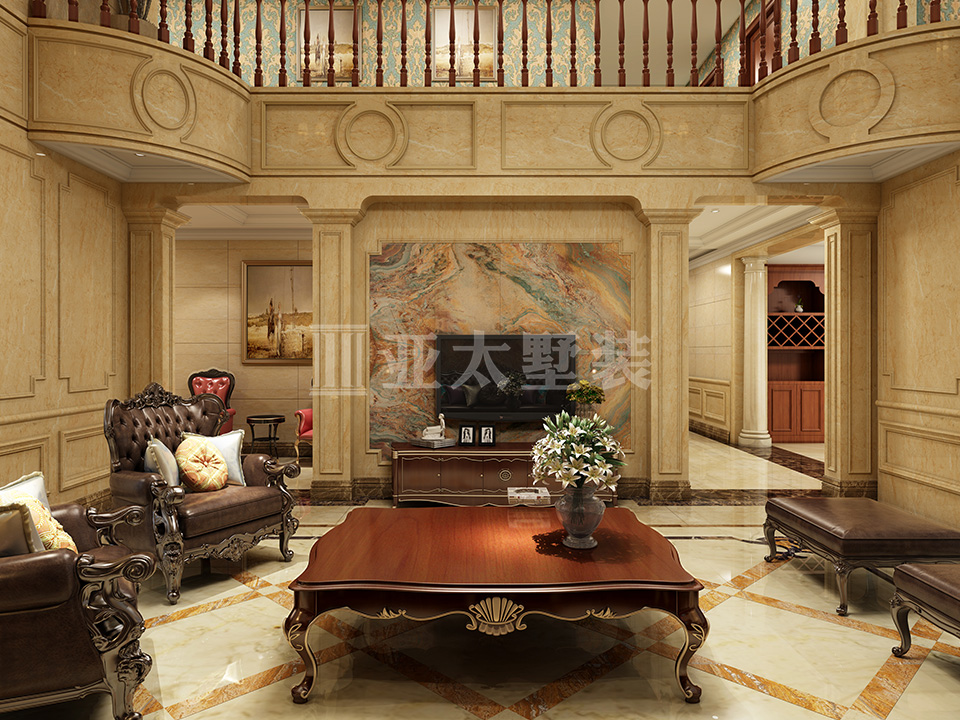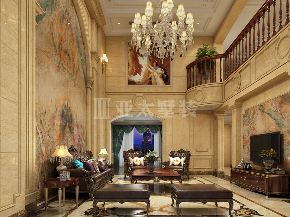 主材配置:石材、原木、艺术涂料、壁画等